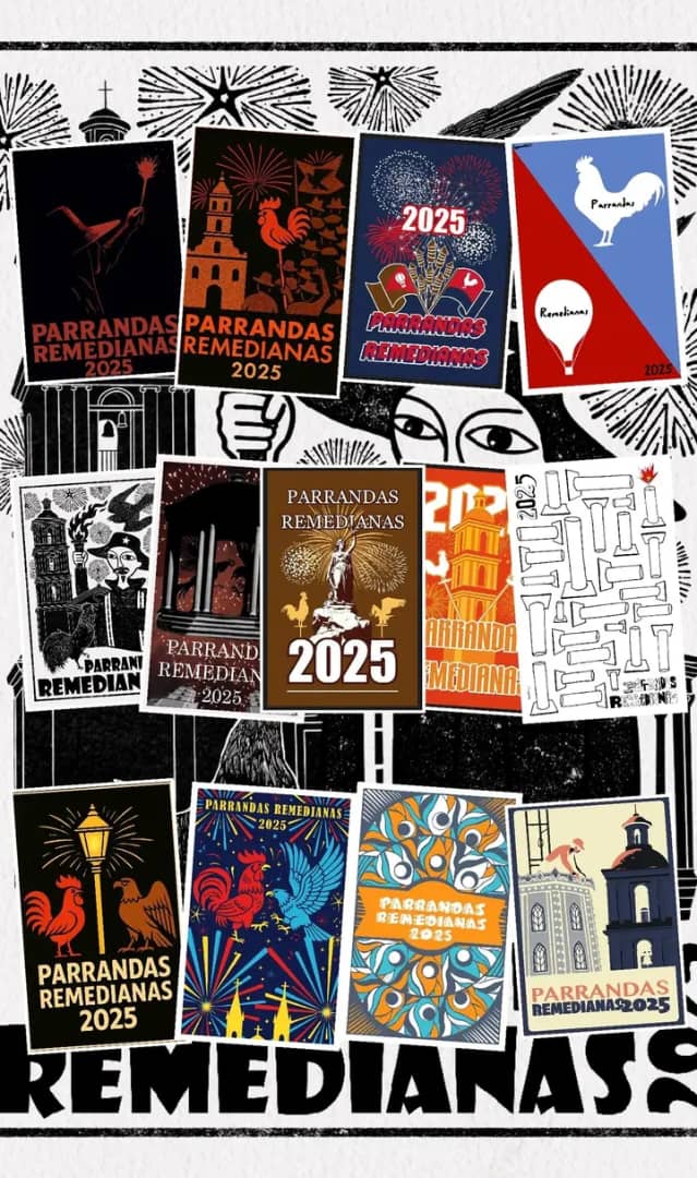 Ir a la ciudad de Remedios por los días de diciembre es toparse con un evento que lleva años definiendo el entorno visual de las tradiciones: los concursos de afiches para las parrandas. Recuerdo de mi infancia que, en la balaustrada de cualquier casa, se colocó siempre un póster hecho con pintura y cartulina, a veces con materiales no tan resistentes que se iban decolorando. No había con qué hacer esas señales gráficas, pero las personas buscaban la manera de realizarlas. El certamen —organizado por el Museo de las Parrandas— convocaba a artesanos, profesionales o no, que tuvieran el talento de reflejar lo que la tradición manifiesta así como su perspectiva. Sin ir muy lejos, allí hay de todo, desde aldabas de las puertas de las viviendas flanqueadas por demonios hasta escenas surrealistas de tableros de fuegos artificiales iluminando la noche. Los carteles han acompañado como una crónica paralela a las fiestas, siendo en sí mismos una especie de subproducto que puede conservarse como souvenir.