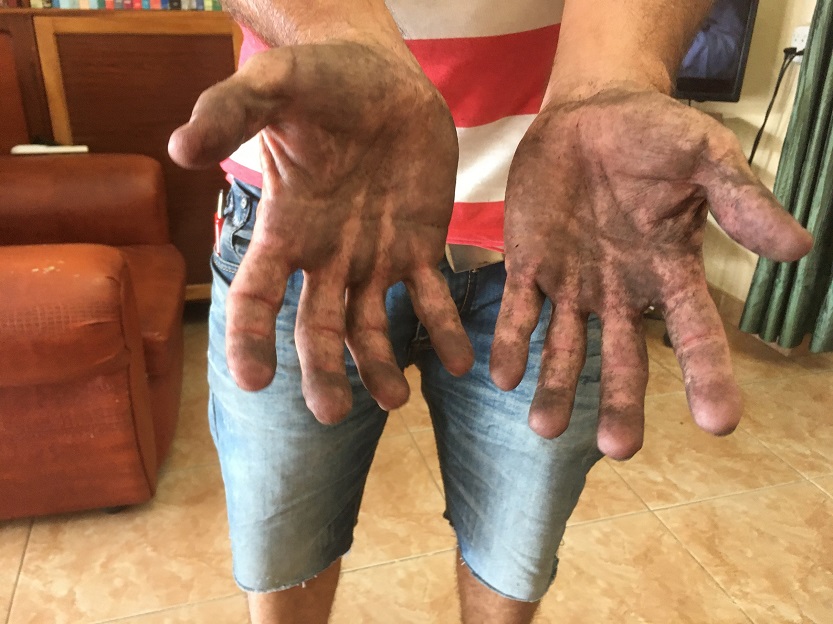 Luisito y sus manos de carbonero al terminar el álbum. (Duanys Hernández/Cubahora)