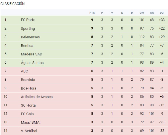 Por su parte, el FC Porto, ahora líder de la Andebol 1, se impuso facilmente sobre el Académica da Maia con pizarra de 31 cartones por 12 durante la culminación de la jornada dos, partido donde el arquero capitalino Alfredo Quintana estuvo en una inmejorable forma. También lograron sumar tres puntos en la tercera fecha al superar al Artística de Avaca 34-27.