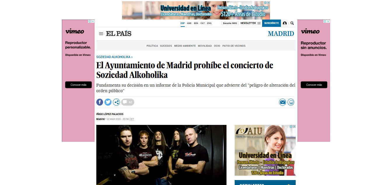 En el 2015 fue noticia la prohibición y suspensión de sus conciertos en Madrid. Censuras que la banda vasca atribuyó a "sectores de la extrema derecha temerosos de la diversidad cultura y la libertad ideológica que estaban presionando para provocar la cancelación de nuestro concierto". Y agregó, "han pasado 13 años desde que nos acusaron y comenzaron a perseguirnos sin cuartel. El mismo tiempo desde que nos pronunciamos claramente contra cualquier tipo de violencia para resolver ningún conflicto. Han pasado ya nueve años desde que fuimos juzgados y absueltos de supuestos delitos".