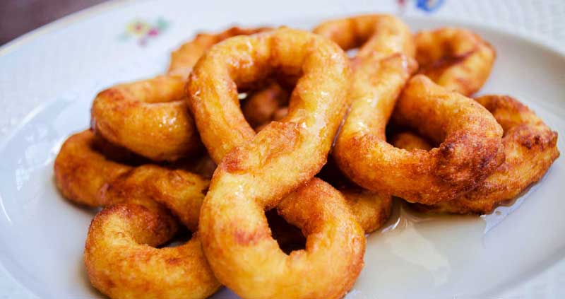 La forma tradicional de servir el buñuelo es poniendo la masa en forma de 8 y espolvoreando azúcar por encima (Foto: Radio Ciudad del Mar)