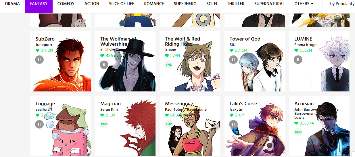 WEBTOON permite la publicación de obras tanto de artistas reconocidos como noveles. Funciona en parte como red social, en el sentido de que los usuarios registrados pueden votar por los mejores títulos, suscribirse a sus favoritos, comentar e incluso apoyar económicamente a los autores que consideren.