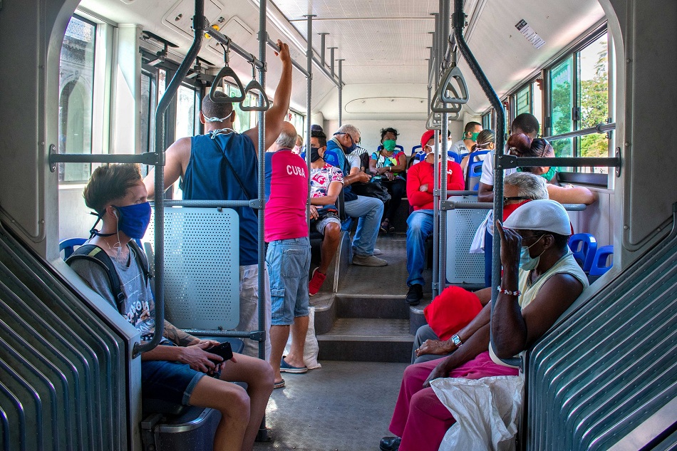 En los ómnibus, dadas las indicaciones del Ministerio del Transporte, es obligatorio portar nasobucos (Foto: Alejandro Leonardo Benítez Guerra)