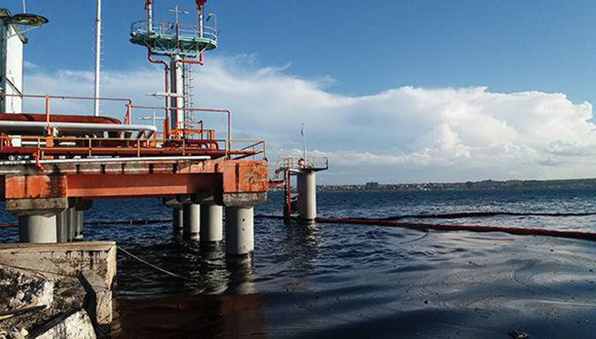 El derrame en la bahía de Matanzas abarco un área importante (Foto: Arturo Rizo/ Granma).