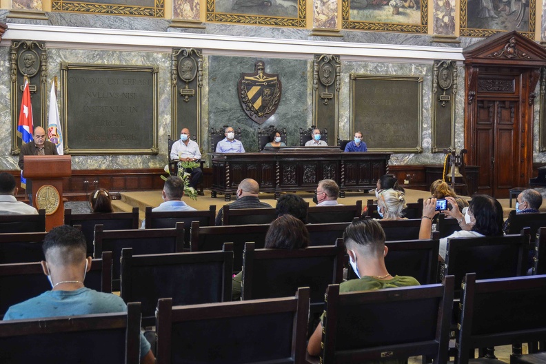Acto de reapertura de la Universidad Popular José Martí, efectuado en el aula Magna de la Universidad de La Habana (UH)