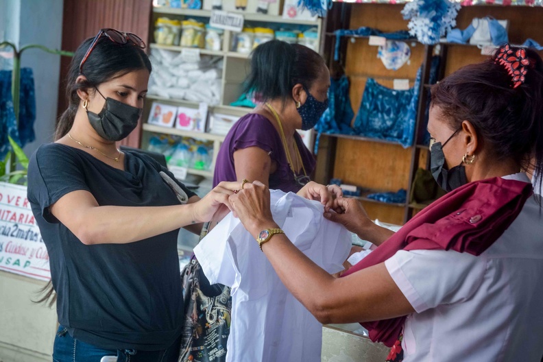 Comercialización del nuevo uniforme previo al inicio del Curso Escolar 2021-2022, tras la mejoría en la situación epidemiológica por la COVID-19, en Las Tunas (Foto: ACN)