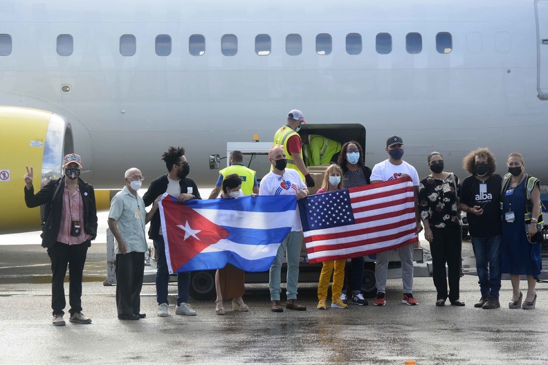 Arriba donativo de alimentos de cubanos-americanos opuestos al Bloqueo, al Aeropuerto Internacional José Martí de La Habana (Foto: ACN)