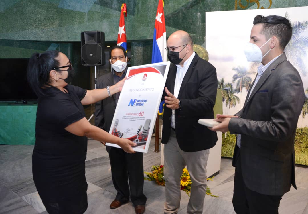 Yuzaima Cardona Villena, Directora General de la Radio Cubana reconoció en nombre del sistema radial al Noticiero Nacional de Televisión por su servicio y apoyo al trabajo informativo (Foto: Radio Cubana)