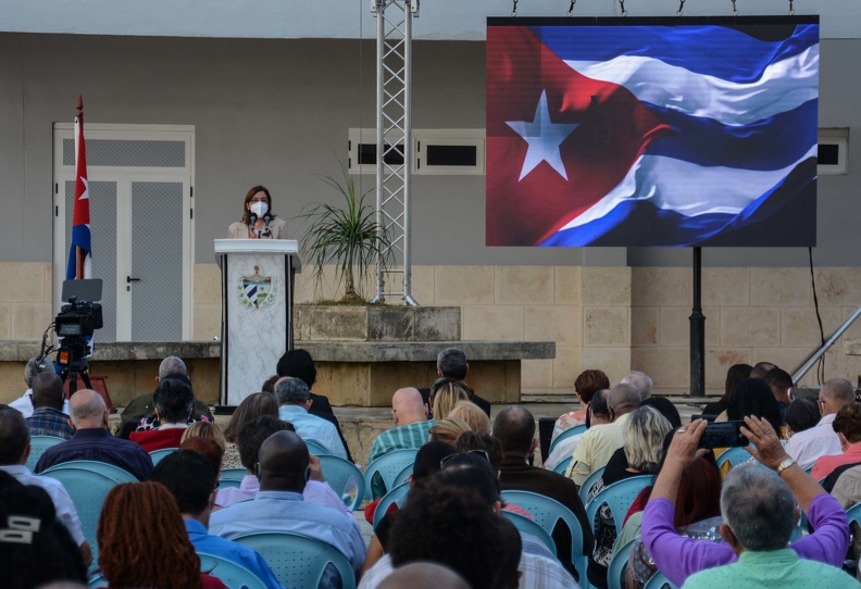 Elba Rosa Pérez Montoya, ministra de Ciencia, Tecnología y Medio Ambiente, durante su intervención en el acto nacional por el día de la Ciencia Cubana, en el Parque Científico Tecnológico de La Habana, el 15 de enero de 2022. ACN FOTO/Marcelino VÁZQUEZ HERNÁNDEZ