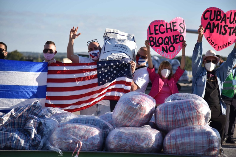 Representantes de las organizaciones estadounidense Puentes de Amor, The People’s Forum y Code Pink, arribaron al Aeropuerto Internacional José Martí con un donativo de 15 mil libras de leche en polvo para el Centro Memorial Martin Luther King que con destinos a hospitales pediátricos de la capital. La Habana, Cuba, 15 de enero de 2022. ACN FOTO/Omara GARCÍA MEDEROS