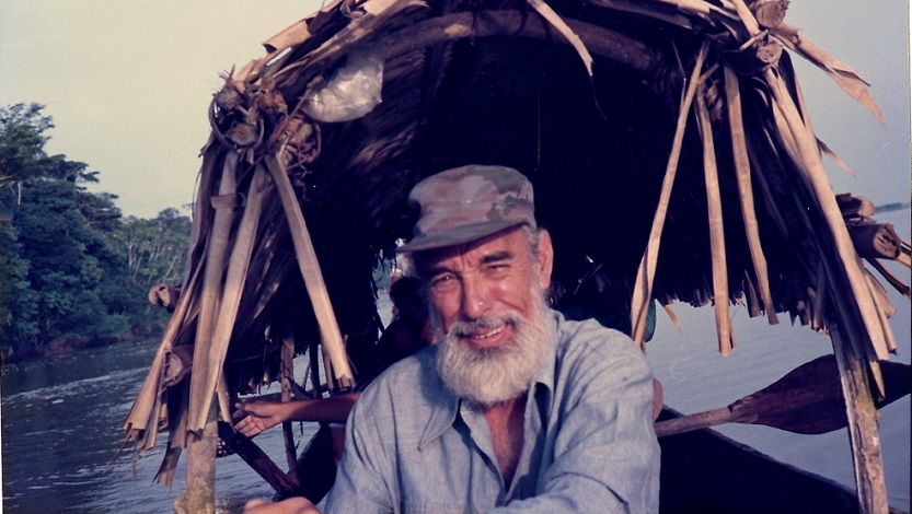 Núñez Jiménez en una canoa en su travesía por el Amazonas (Foto: Cortesía del autor).