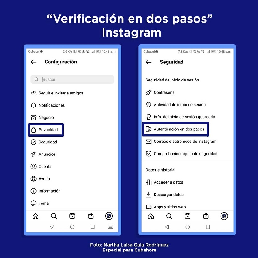 VERIFICACIÓN EN DOS PASOS DE INSTAGRAM