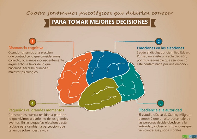 Con frecuencia debemos elegir entre dos o más opciones. A veces se nos presentan situaciones sencillas, como ¿qué voy a almorzar hoy? Otras conllevan a reflexionar un poco más, como ¿qué carrera elegiré? o ¿a qué lugar me mudaré? A continuación les comento sobre cuatro efectos psicológicos que deberíamos tener en cuenta antes de tomar cualquiera de estas decisiones.
