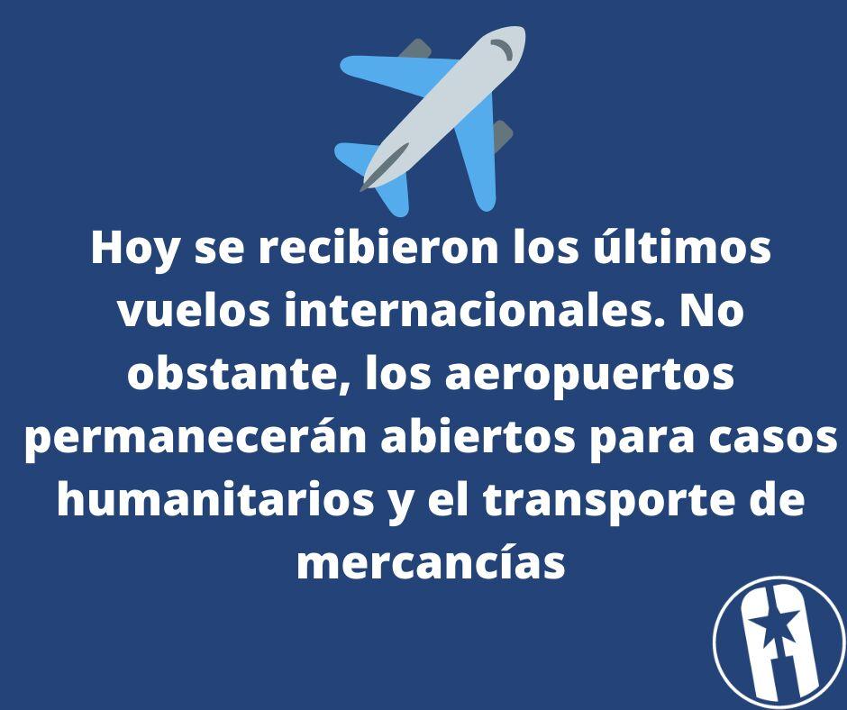 • Se mantienen los vuelos para casos humanitarios y el transporte de mercancías.