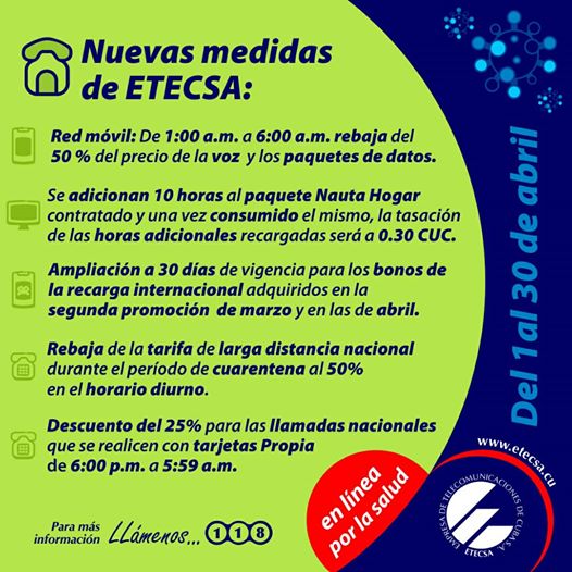 • Se han tomado medidas para facilitar el comercio electrónico y evitar movimientos de personas, entre ellas la plataforma enzona se puso libre a disposición de los clientes.