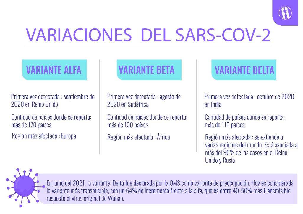 Las variantes de preocupación identificadas a nivel mundial son la alfa (notificada por primera vez en Reino Unido), la beta (en Sudáfrica), la gamma (en Japón) y la delta (en India). Expresó que de todas estas la que más se extiende actualmente es la delta, ya que tiene mayor transmisión.