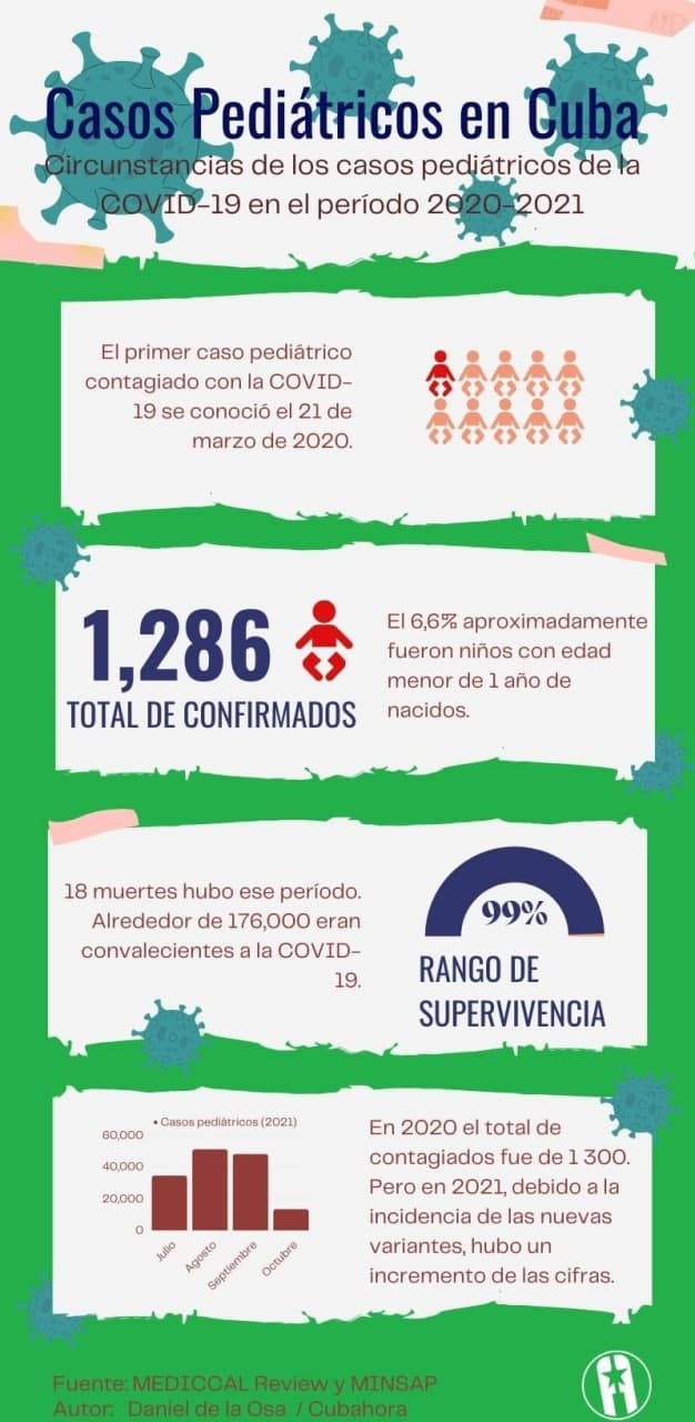 Al inicio de la pandemia en Cuba los casos pediátricos fueron poco, unos 1308 en 2020, pero posteriormente la incidencia aumentó con la aparición de nuevas variantes como la Delta. Lamentablemente, ocurrieron 18 fallecimientos de menores de edad entre 2020 y 2021, asociados también a comorbilidades.