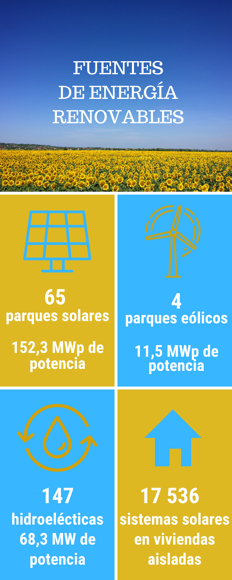 Se conoce que los proyectos asociados a la energía solar fotovoltaica son mayores avances; con 65 parques construidos y otros 15 en proceso de construcción, que incrementarán en 42 megawatts (MW) la potencia instalada actual.
