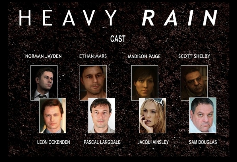 En Heavy Rain veremos los sucesos desde la perspectiva de cuatro personajes, quienes se encargarán de encontrar al asesino y salvar a la víctima, o no. Cada uno de los personajes tiene una historia diferente y el único enlace que tienen entre sí es el asesino.
