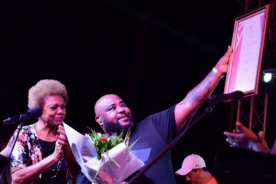 Otro de los momentos más importantes de la noche fue el homenaje realizado a la Orquesta “La Revé”, interpretando el tema Mi salsa, de su última producción discográfica Será que se acabó.