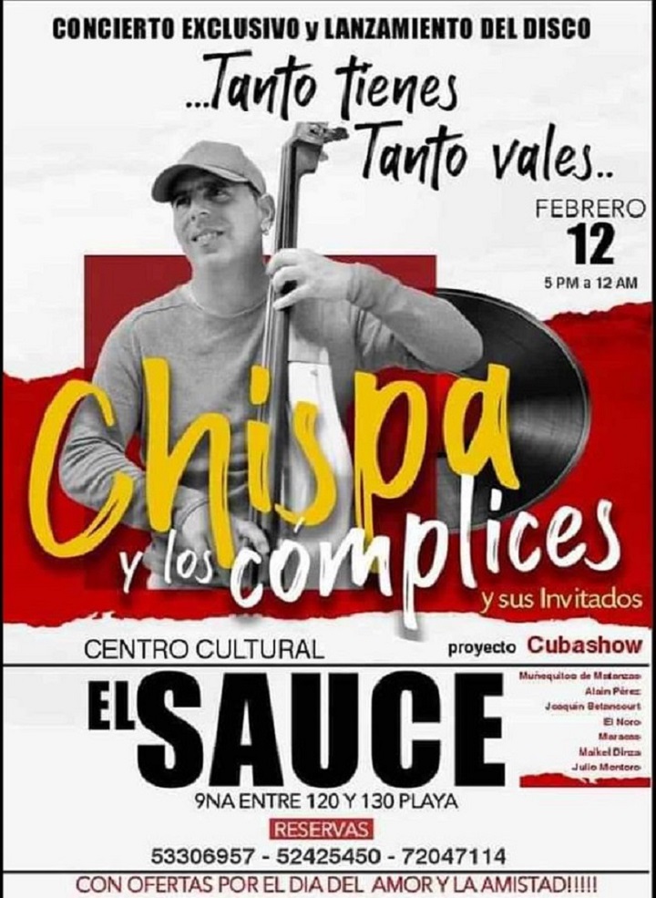 El 12 de febrero a las 6:00 de la tarde, Chispa y los Cómplices presentará en El Sauce su séptimo fonograma que desprende sabor y cubanía y lleva por título Tanto tienes, tanto vales. Once temas conforman el CD, grabado con el Sello Unicornio de Producciones Abdala, con la colaboración de la Agencia de Representación Artística Clave Cubana de Artex S.A.