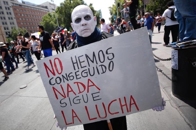Cuando aun no se había calmado la furia de los ecuatorianos, en Chile millares de personas de todos los estratos sociales salieron en masa a las calles del país –donde aun permanecen- en un gran movimiento popular para protestar por un nuevo aumento del pasaje del metro. En realidad, y así lo confirmaron manifestantes a la prensa, ese fue el detonante para la reprobación de un régimen que se declaró públicamente en guerra contra un poderoso enemigo (el pueblo) víctima desde entonces de contra el cual desató una punición superior a la vivida durante la dictadura de Augusto Pinochet.