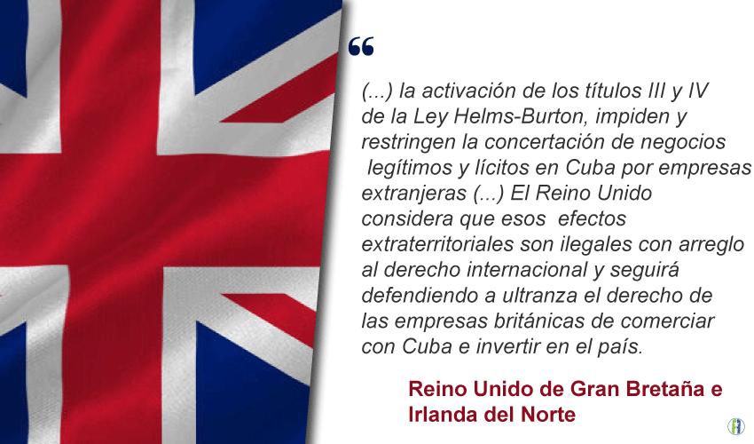 El Reino Unido exhortó a los Estados Unidos a que ponga fin a su bloqueo económico, comercial y financiero contra Cuba, ya que genera “efectos negativos en el nivel de vida del pueblo cubano e impide el desarrollo político y económico del país”, añadió.