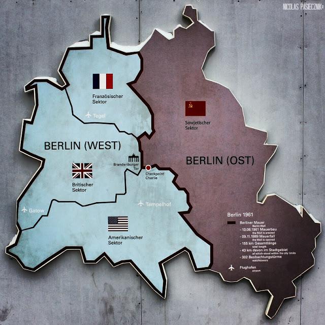 Mapa que muestra la división de los dos Berlín, en la antigua RDA.