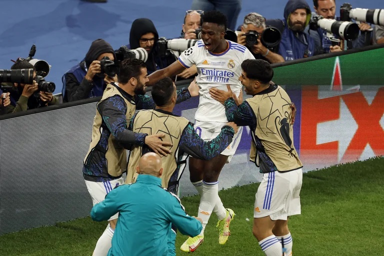 Vinicius Junior puso la ventaja del Real Madrid ante Liverpool en la gran final de la Champions League. (Tomada de Reuters).