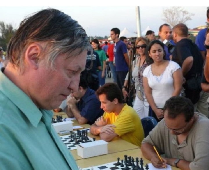 El siete veces campeón del mundo, GM Anatoli Karpov prestigió la simultánea gigante realizada en 2004 en Santa Clara. (Tomada de Cubadebate)