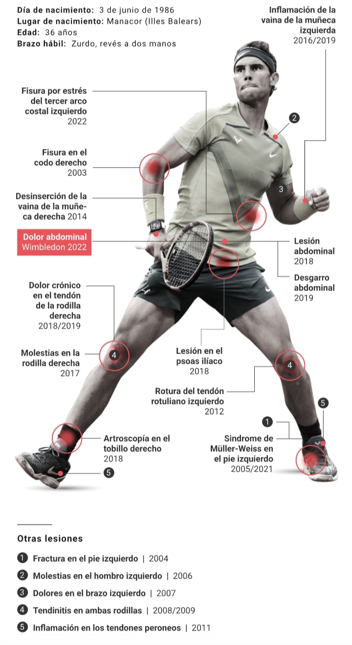 “Más importante que ganar Wimbledon es mi salud”, sentenció el manacorí quien permanecerá entre dos y tres semanas fuera. Su objetivo ahora es participar en el US Open a finales de agosto, y para ello necesita hacer reposo.