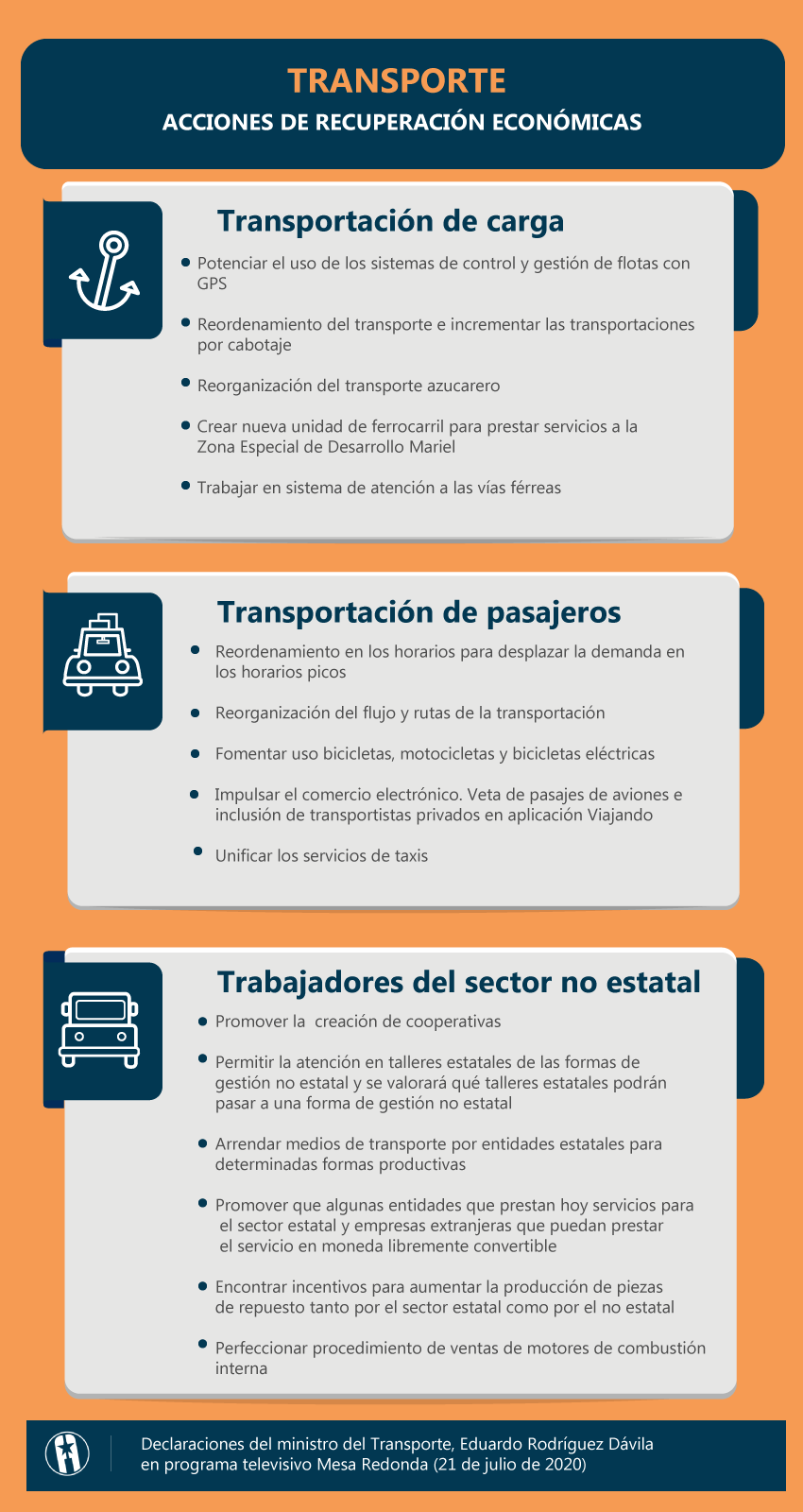 Con el objetivo de implementar la estrategia para impulsar la economía, el sector del transporte ha elaborado un grupo de acciones para perfeccionar su gestión y aprovechar los recursos financieros limados con los que cuenta el país, según explicó Rodríguez Dávila.