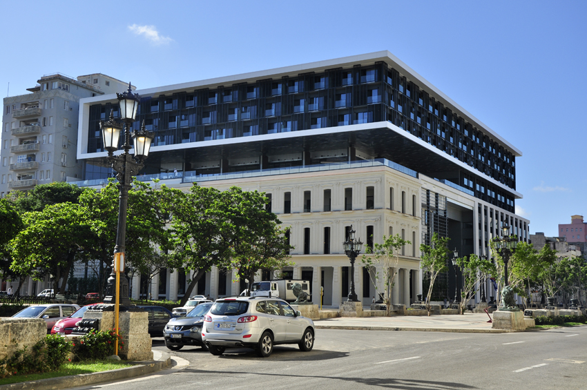 El nuevo hotel se encuentra ubicado en la emblemática avenida Paseo del Prado y permite desde sus diez plantas visualizar una panorámica del Malecón que bordea la bahía de La Habana y el Castillo de los Tres Reyes del Morro.