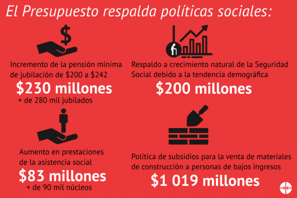 “En la compleja coyuntura económica actual, marcada por las tensiones financieras y el recrudecimiento del bloqueo, se garantiza la sostenibilidad de los servicios sociales básicos en el 2019”, ratificó Bolaños.