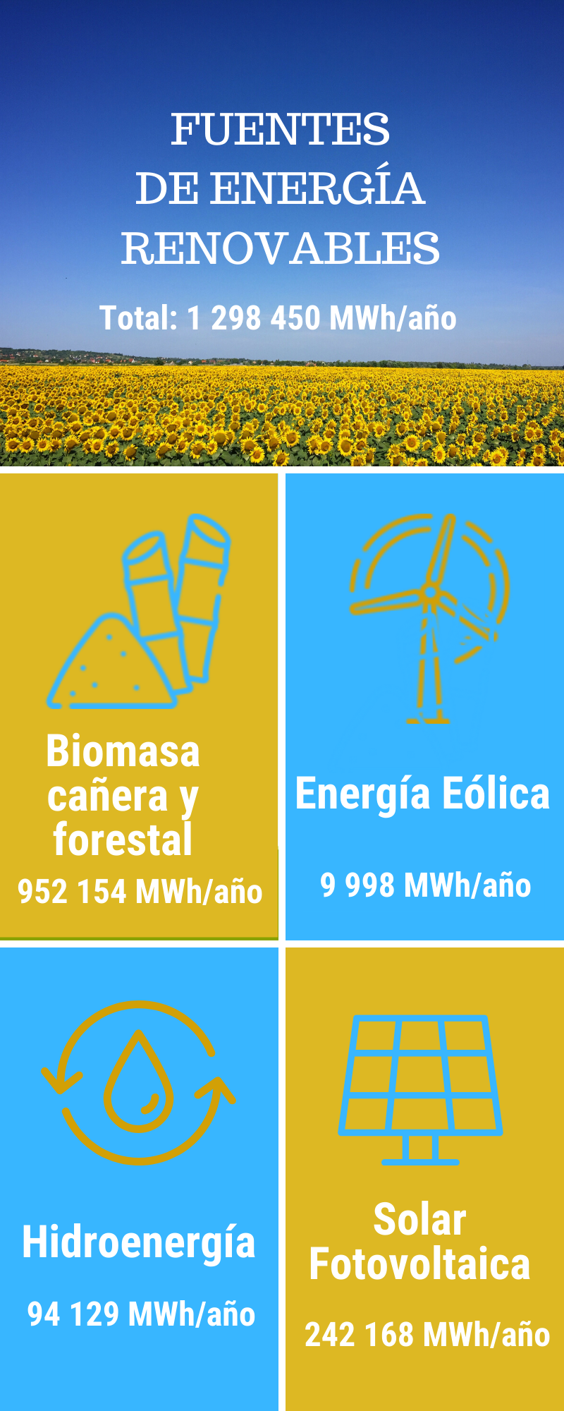 Se puede incorporar paneles solares en los techos de las instituciones del país, fábricas, industrias, empresas donde exista potencialidades para el uso de esa fuente de energía renovable. También se puede incorporar generadores eólicos de menor tamaño. Imaginase si todos los centrares azucareros tuvieran una Bioeléctrica a que nivel estuviéramos. Pero hay más podemos usar la corriente de los ríos destinada a los embalses para generar electricidad mediante hidroeléctricas. Con los residuos pecuarios se obtiene biogás que puede generar energía.