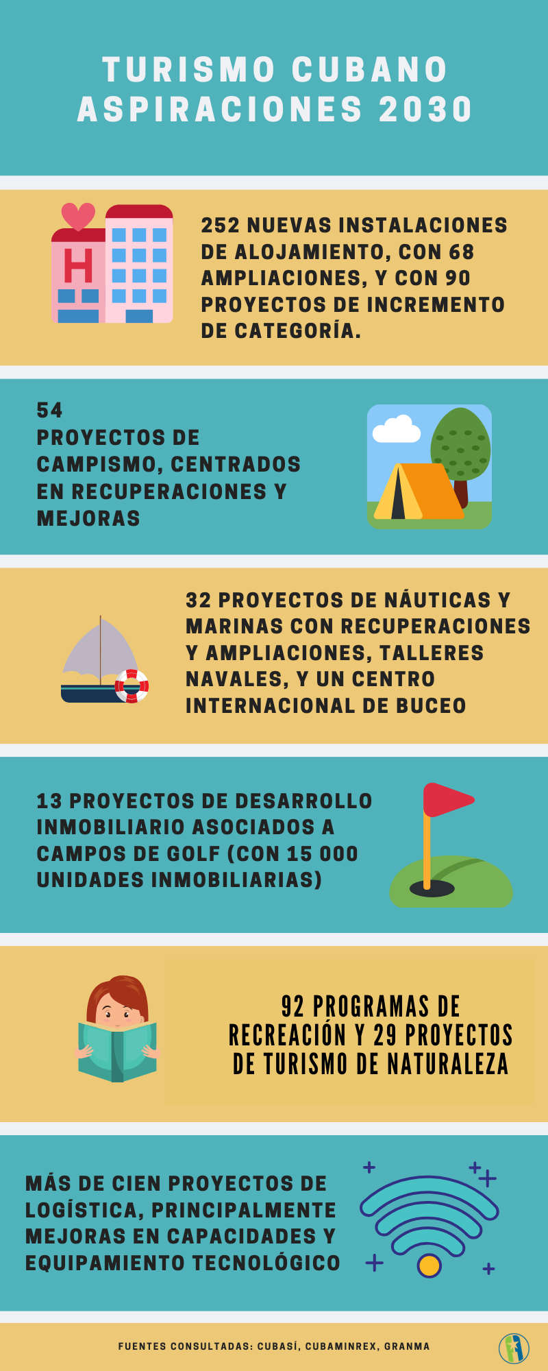 El sector turístico constituye uno de los seis estratégicos del Plan de Desarrollo del país. Con el paso de los años ha diversificado sus mercados emisores, lo que le permite afrontar las brutales regulaciones para el turismo estadounidense y sus impactos económicos y psicológicos en otros destinos. Según informó el Ministro de Turismo Juan Carlos García Granada en el espacio televisivo Mesa Redonda, al cierre del 2019 llegaron a Cuba 4 millones 275 mil visitantes, lo que representó un decrecimiento de un 9,2% con relación a 2018.