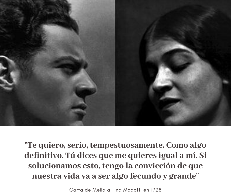 No obstante, en enero de 1928 Mella conoció, en la redacción de El Machete, a Tina Modotti, fotógrafa italiana. Con rapidez se desarrolló un romance entre ambos. Mella calificaba el amor como lleno de arrebato y hondura, y en una ocasión escribió a Tina: “¿explícame qué amor es este que me lleva a la desesperación?”