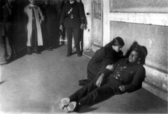 Tina Modotti durante la reconstrucción del asesinato de Julio Antonio Mella (Fuente: Colección Archivo Casasola)