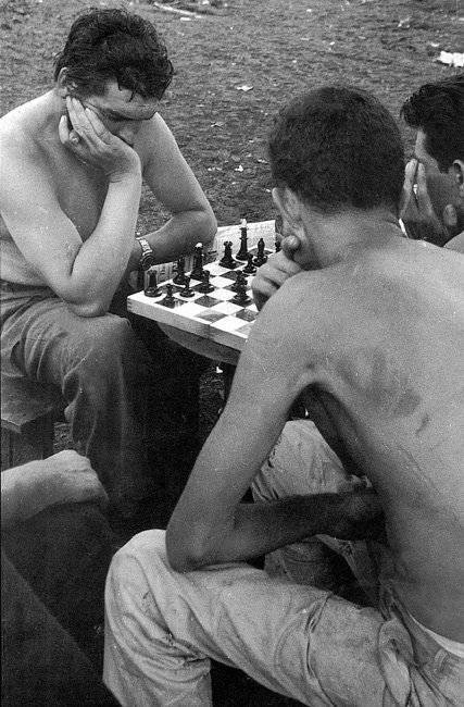 Tomada en 1962. El Che juega una partida de ajedrez tras la realización de un trabajo voluntario (Foto: Rogelio Andrés Torre).
