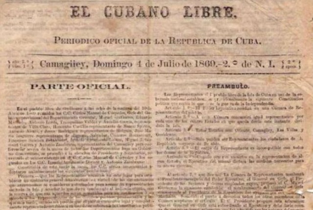 Con el estallido de la Guerra de los Diez Años surgió El Cubano Libre, periódico fundado a iniciativa del Padre de la Patria, Carlos Manuel de Céspedes, cuyo primer número fue publicado el 17 de octubre de 1868 y bautizado con ese nombre por el poeta y periodista José Joaquín Palma, cuando dijo: “¿No vamos a libertar al cubano? El periódico; pues, debe llamarse El Cubano Libre”.