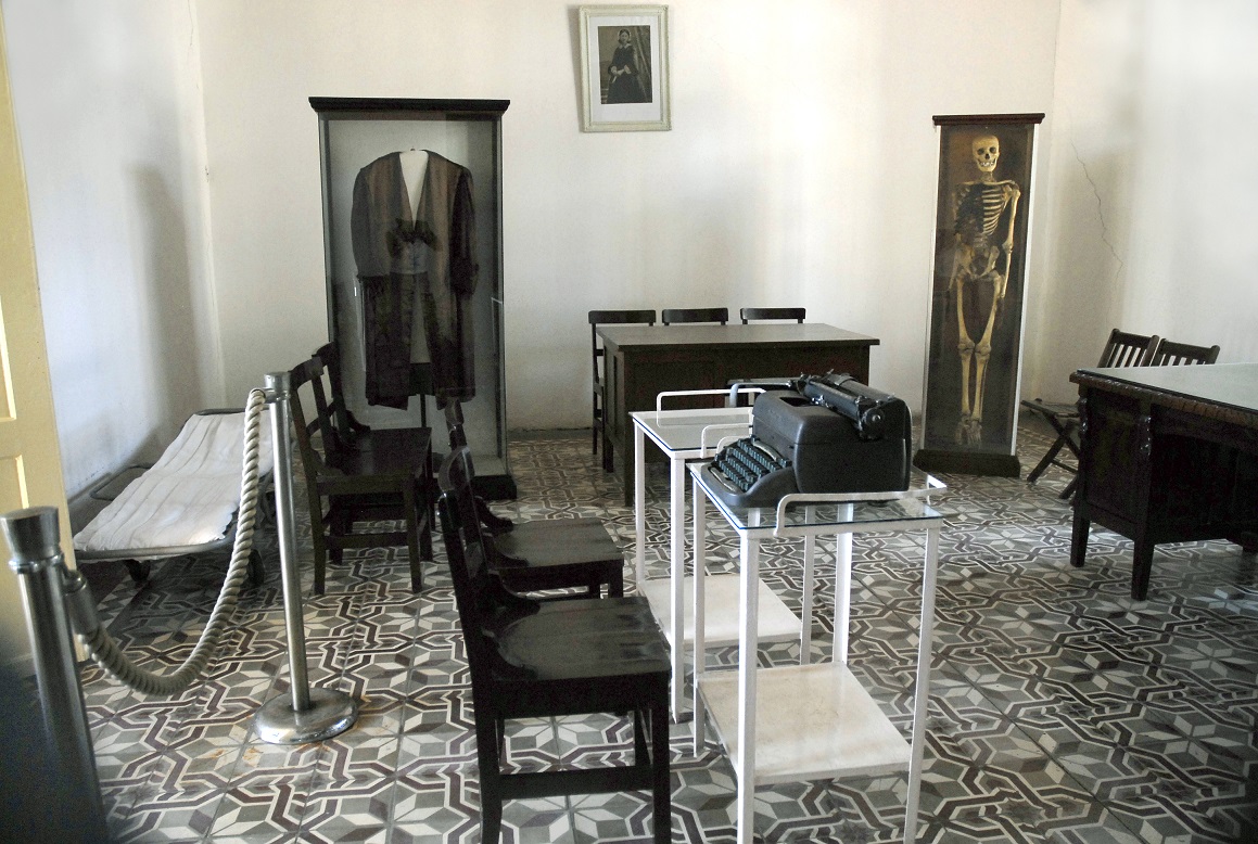 La habitación tenía un espacio de cuatro metros de largo por cuatro de ancho. Había un escalofriante esqueleto en una urna de cristal; otro estante con libros; como único cuadro en la pared un retrato de Florence Nightingale, pionera de la enfermería moderna. Había dos burós: uno con tres sillas donde se sentaron los magistrados, y otro donde se ubicaron los abogados defensores Baudilio Castellanos y Marcial Rodríguez, y el incriminado Gerardo Poll, obrero ferroviario que nada tuvo que ver con el asalto. Además, estaba la mesita con su butaca para el fiscal, otra con una máquina de escribir para el secretario del tribunal, una mesita y silla para Fidel, la camilla del asaltante Abelardo Crespo –convaleciente de una herida en el pulmón–, seis sillas de tijera destinadas a los periodistas, y si acaso otras tres ocupadas por recién graduados de abogados en calidad de oyentes. Los mosaicos libres fueron llenados por soldados con fusiles y bayonetas caladas. Afuera otro contingente de guardias armados hacía de candado.