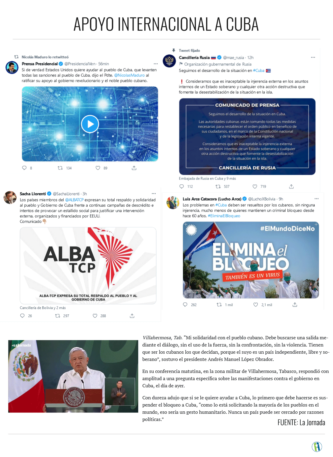 Precisamente, Sobre los acontecimientos ocurridos el 11 de julio en Cuba, Bruno Rodríguez Parrilla, Ministro de Relaciones Exteriores, explicó que el mundo reaccionó con respeto y confianza por la trayectoria intachable del país, siempre apegada a la verdad, con el pueblo, por el pueblo y para el pueblo.