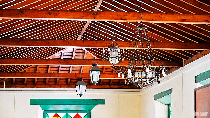 Museo Provincial Coronel Simón Reyes Hernández. Armadura simple de parhilera con cuatro faldones, tirantes sin pareado ni lacerías. No presenta harneruelo, por lo que no es un alfarje de par y nudillo. Las vigas apoyan directamente en el estribado.