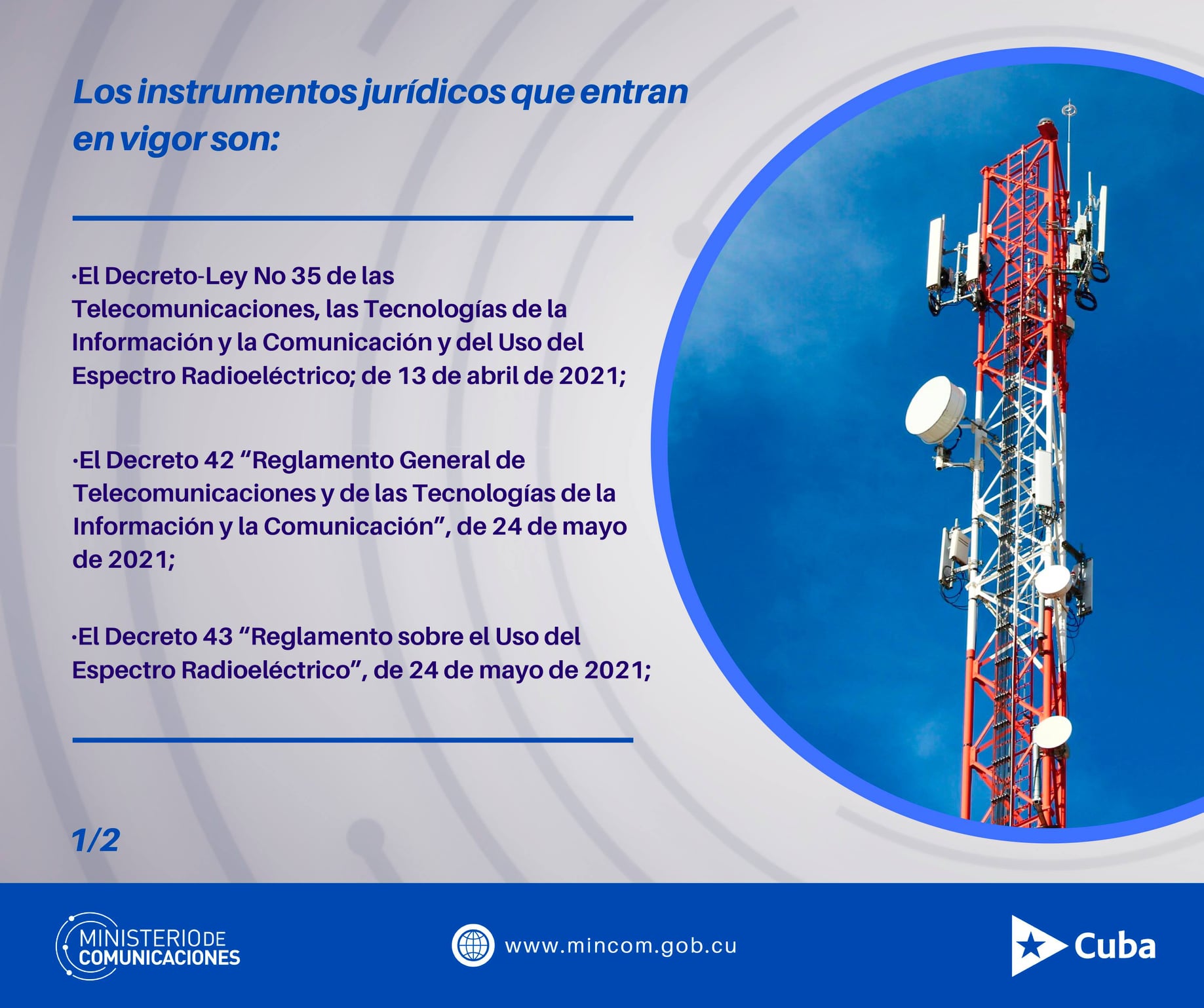 El Decreto-Ley No. 35 ¨De las Telecomunicaciones, las Tecnologías de la Información y la Comunicación y del uso del Espectro Radioeléctrico¨; es la primera norma jurídica de rango superior aprobada en nuestro país sobre los servicios de Telecomunicaciones, las Tecnologías de la Información y la Comunicación y sobre el Uso del Espectro Radioeléctrico. Se le asigna una mayor jerarquía e importancia por su transversalidad en los procesos de la sociedad, lo que permite una mayor coherencia y ordenamiento del marco regulatorio existente.