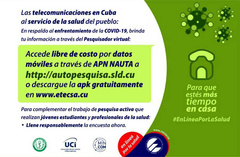 Sobre la pesquisa activa comentó que es una de las actividades sanitarias más importantes que se lleva a cabo en el país, de conjunto con los kits rápidos, pues permiten detectar a tiempo nuevos casos de la enfermedad. Sobre estos últimos, informó que de los 50 mil que se han hecho, solo el 0.4% ha resultado positivo. Llamó la atención de la importancia que tiene que las personas no oculten los síntomas durante el pesquisaje.
