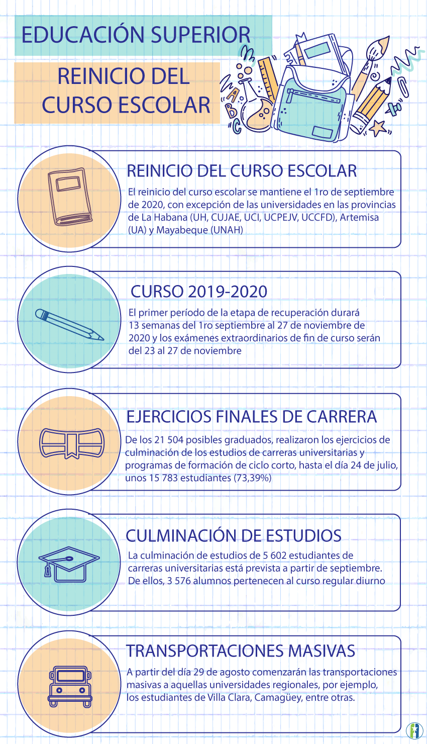 Este primero de septiembre reiniciará el curso escolar en las universidades cubanas a excepción de las provincias La Habana, Artemisa y Mayabeque, dada la compleja situación epidemiológica en el occidente del país.