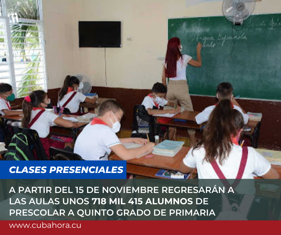 Este 8 de noviembre se incorporan los alumnos de sexto a onceno grado a las aulas y el próximo 15 de noviembre lo harán los niños de prescolar a quinto grado de primaria, con esto ya en toda Cuba se retomarán las tan esperadas clases presenciales del curso escolar.