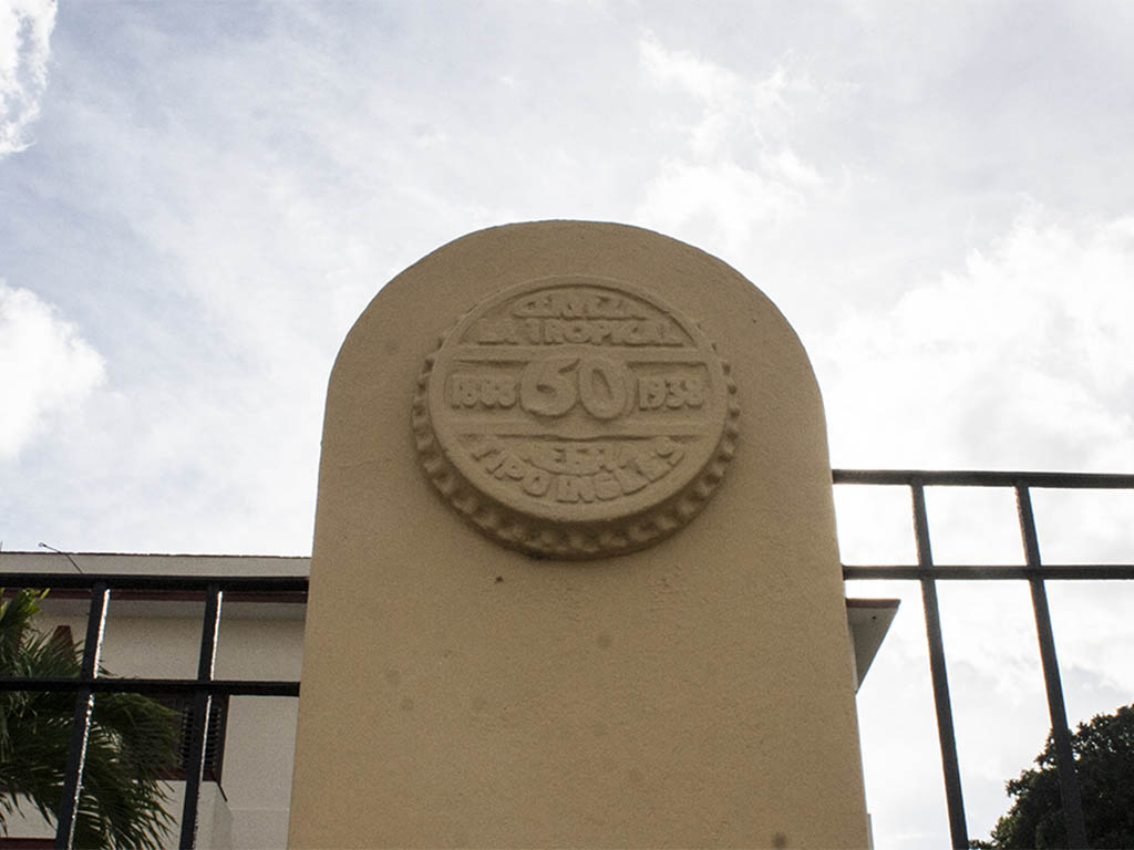 Pasaron inadvertidos para los transeúntes a lo largo de los años. Por estos días, el muro perimetral del Ministerio de la Industria Alimentaria muestra un colorido inusual. ELa que otrora fuera la renombrada compañía Nueva Fábrica de Hielo, alberga un singular patrimonio que abarca desde vitrales alegóricos, esculturas y  relieves en bronce que rememoran los inicios de la singular empresa y sus fundadores hasta  chapas o tapas de las botellas de bebidas, fundidas en morteros de cemento las cuales hoy  llaman la atención de los viandantes.