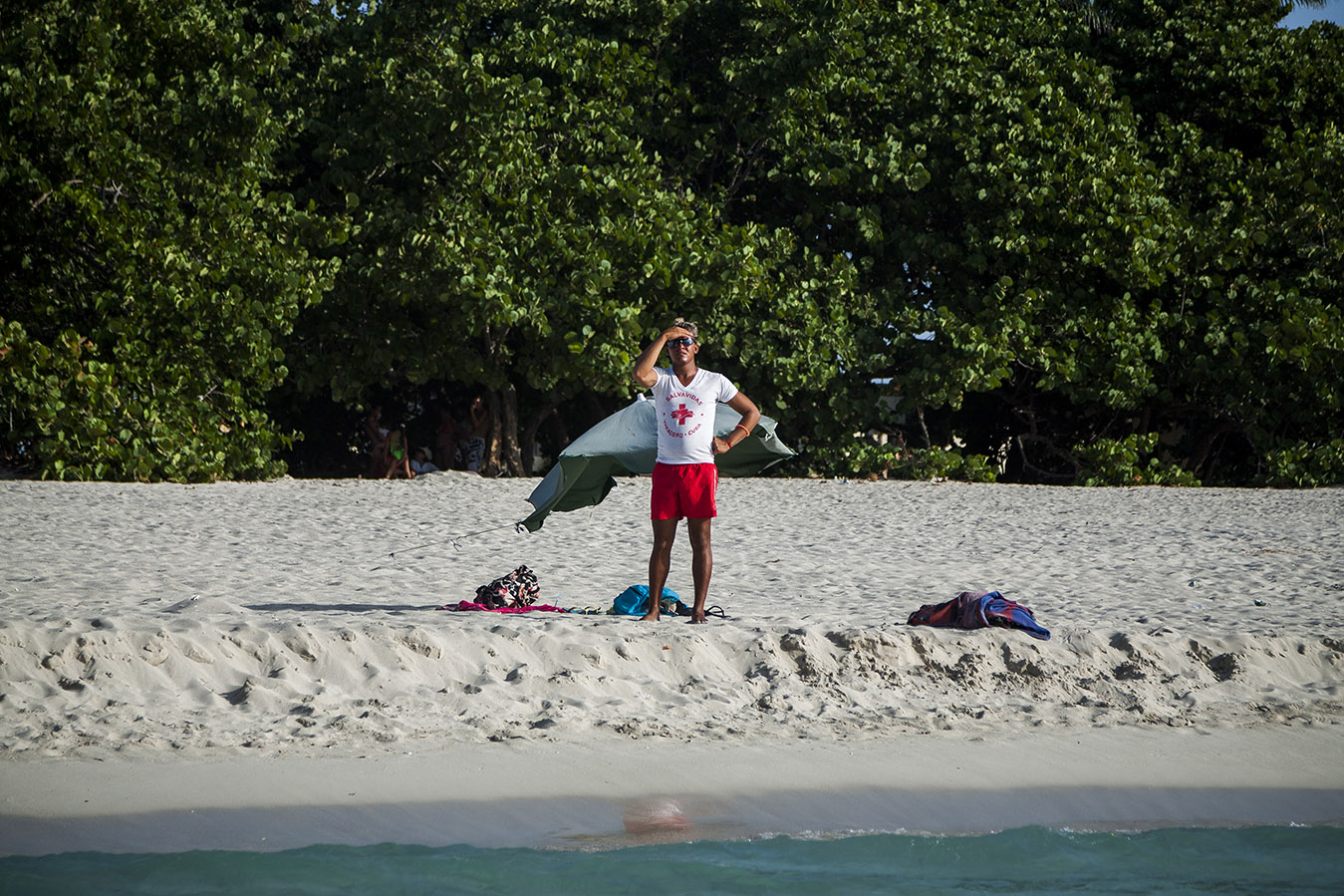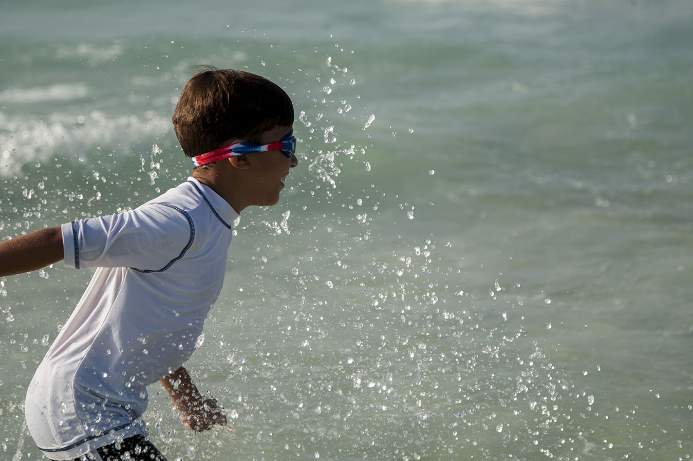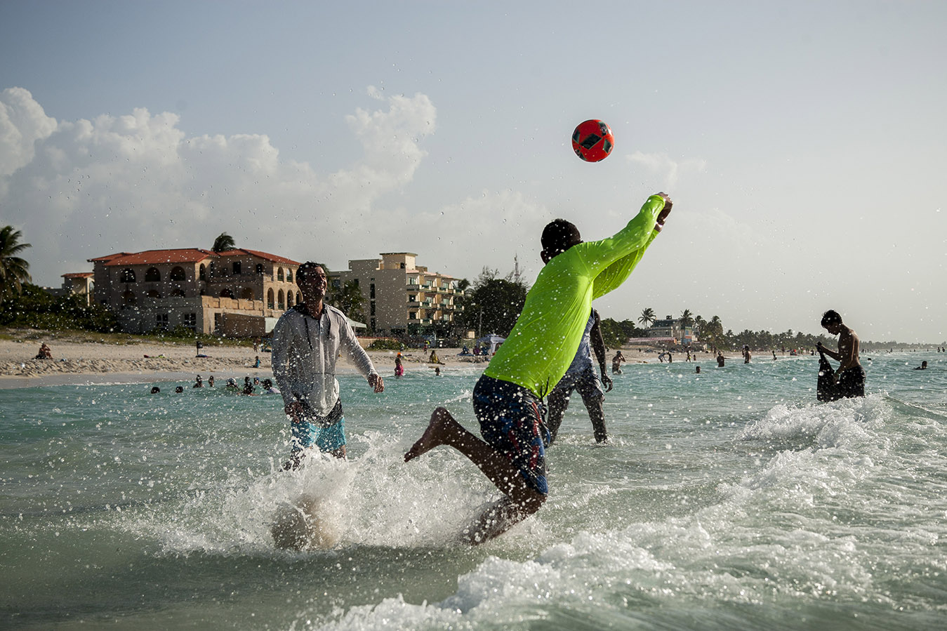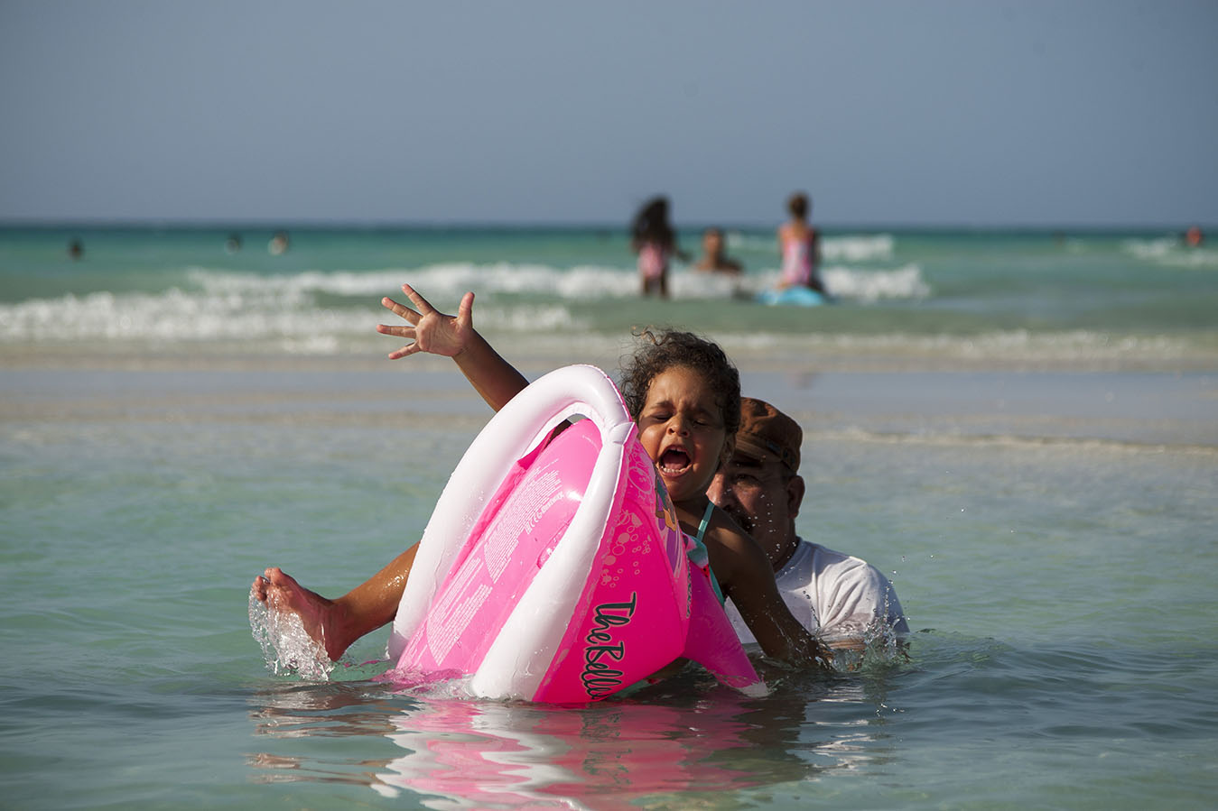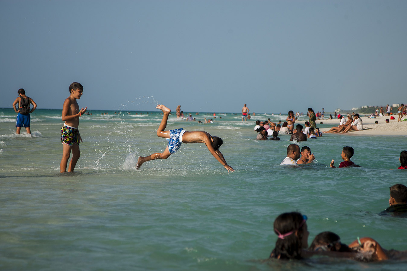 Un grupo de jóvenes juega voleibol, una niña salta mientras otra casi cae de su pequeño salvavidas, casas de campaña para protegerse del sol: las escenas en la playa son infinitas, y si se fotografían desde el agua todavía más.