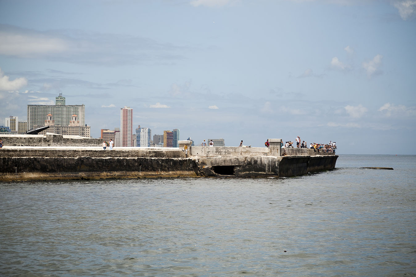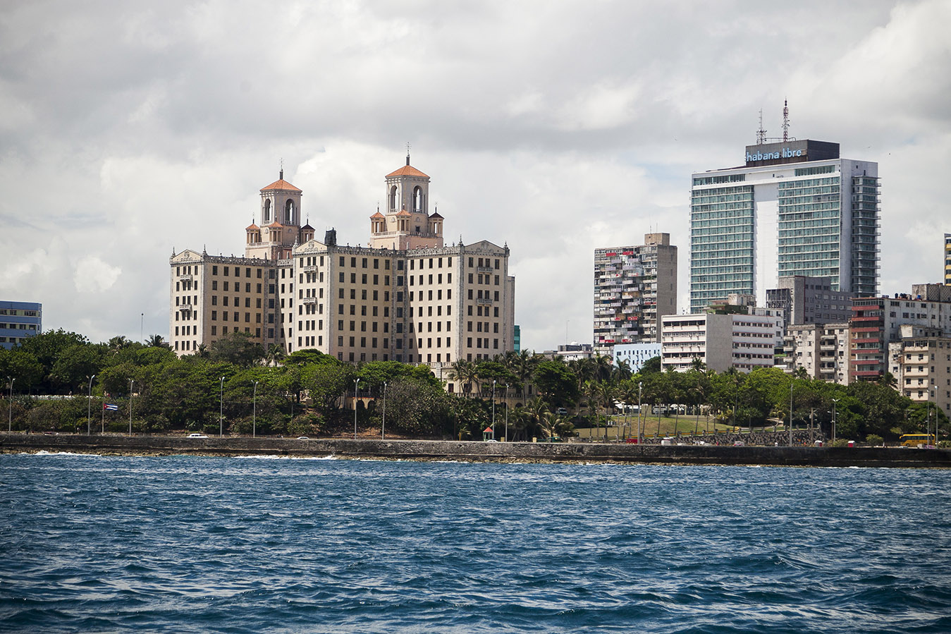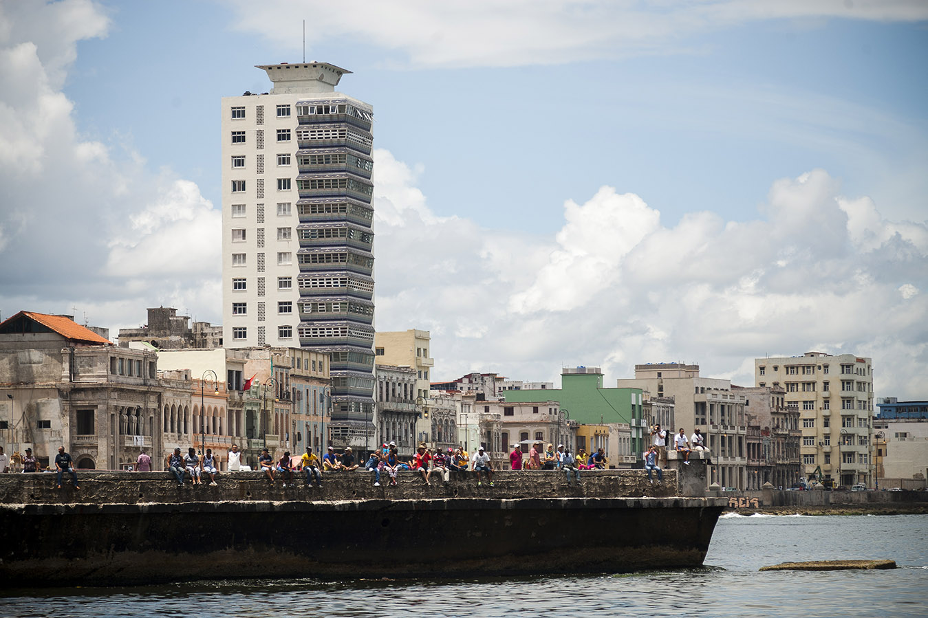 Recientemente, nuestro fotorreportero Fernando Medina, tuvo la oportunidad de capturar algunas instantantes de la ciudad desde una posición privilegiada: el mar. Resaltan los edificios y esa larga línea que forman en todo el horizonte, el malecón, el Castillo del Morro y el panorama de restauración y construcción de nuevas infraestructuras, síntomas del desarrollo gradual de nuestro país.